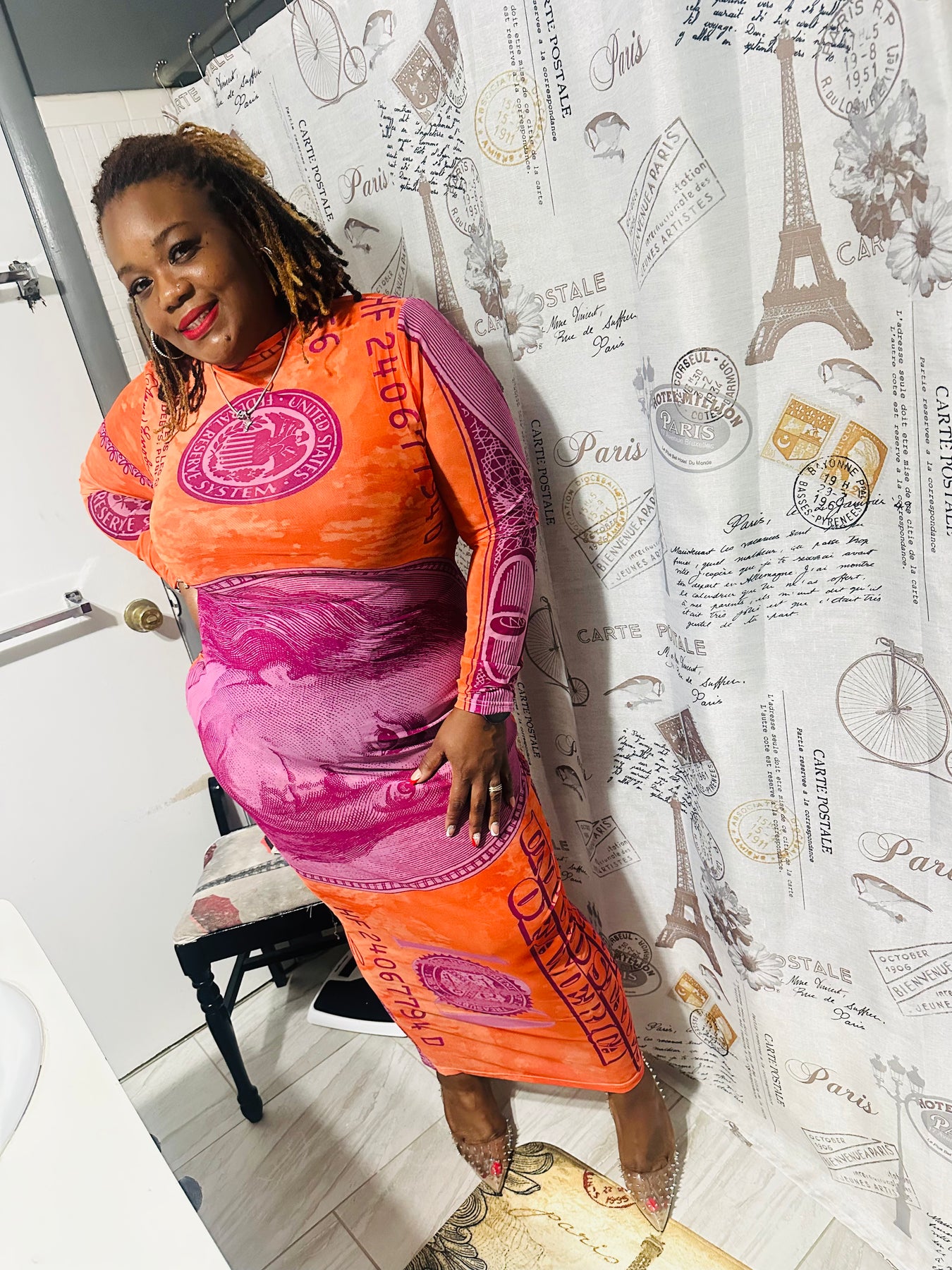 Step into your Miami moment with the Million Dollar Motion Dress — a bold, curve-hugging statement piece that moves with you and demands attention. Designed with vivid money-print detailing and a sleek long-sleeve silhouette, this dress brings luxury energy to every room you walk into. Whether it’s a rooftop party, a night on South Beach, or a birthday you want to remember, this look says one thing: you’re priceless, and the night is yours.